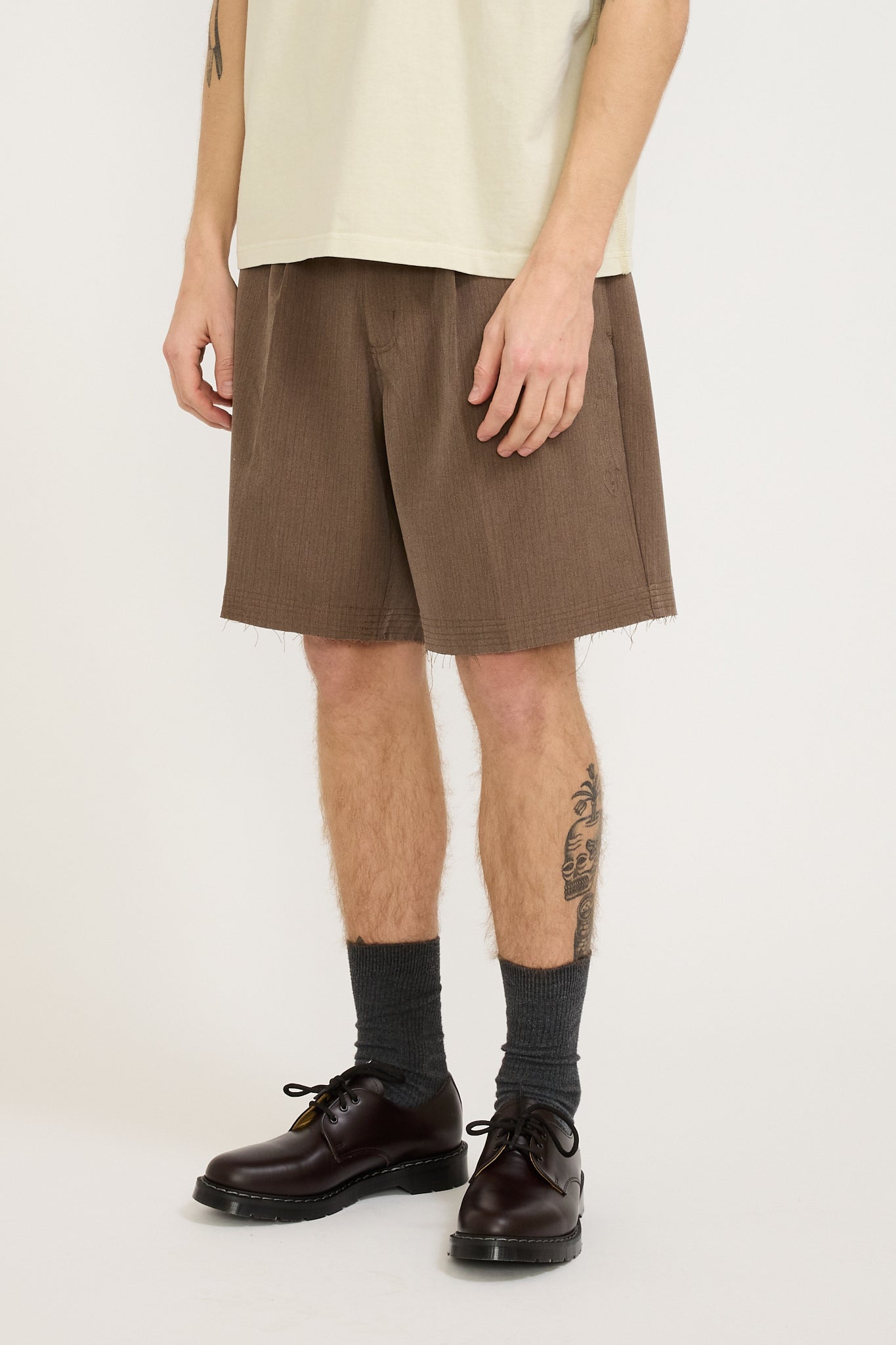 Pleated Suit Short Taupe Pinstripe