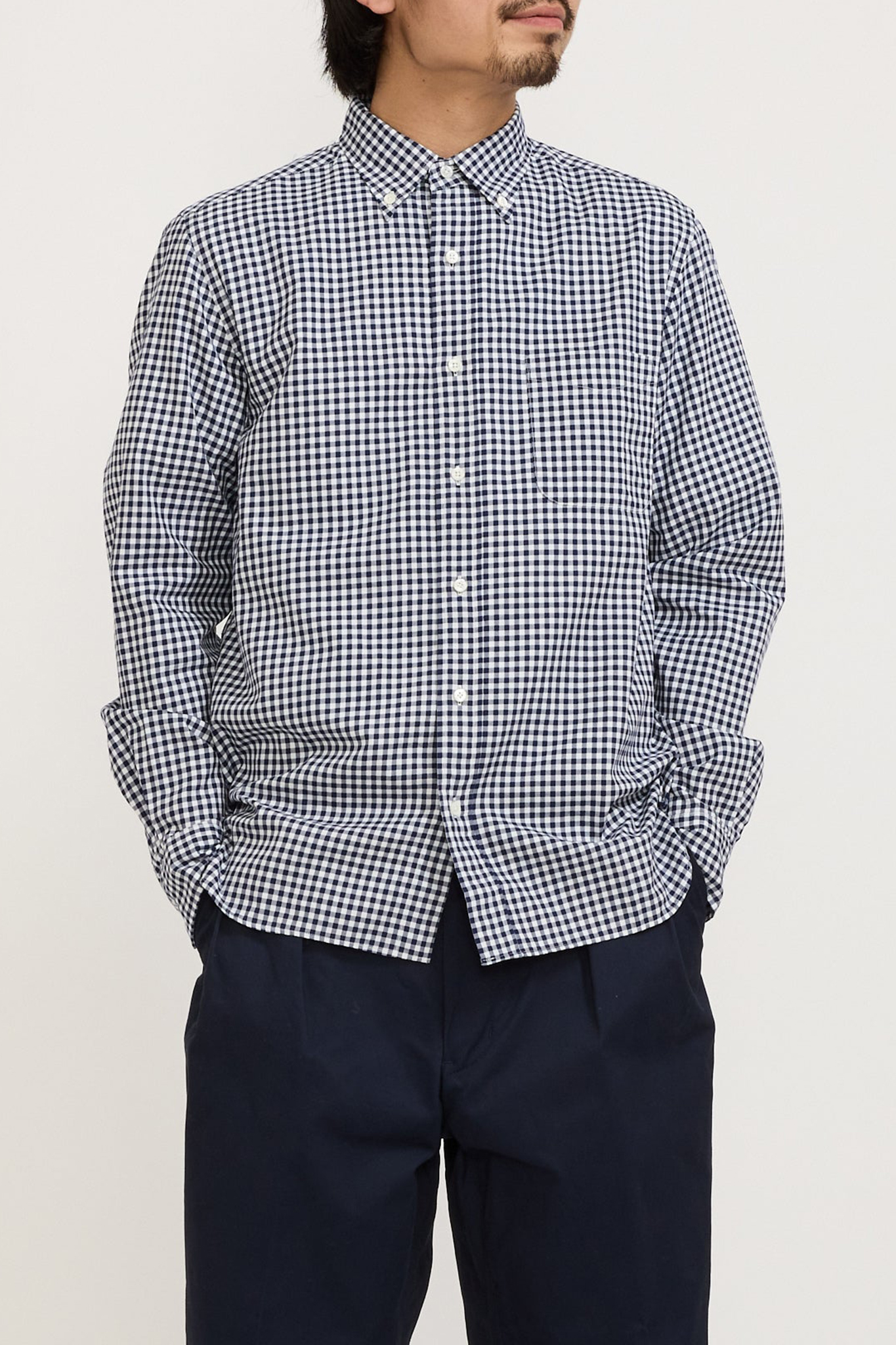 Gingham Check 100/2 Twill Navy Shirt