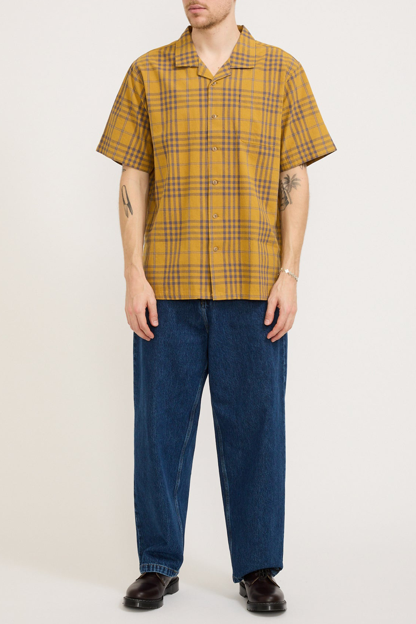 Washed Camp Collar Shirt Yellow Multi